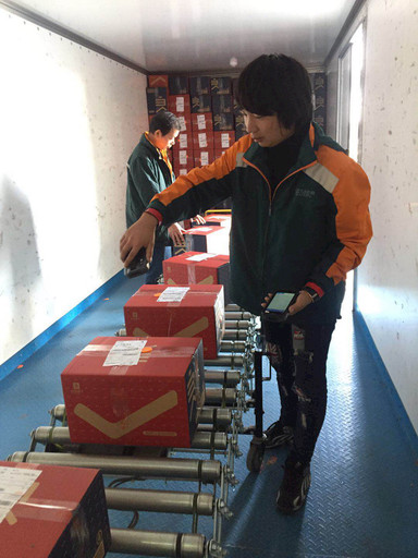 为加快处理速度,武汉速递良品铺子项目组将邮件收寄前置到邮车车厢。