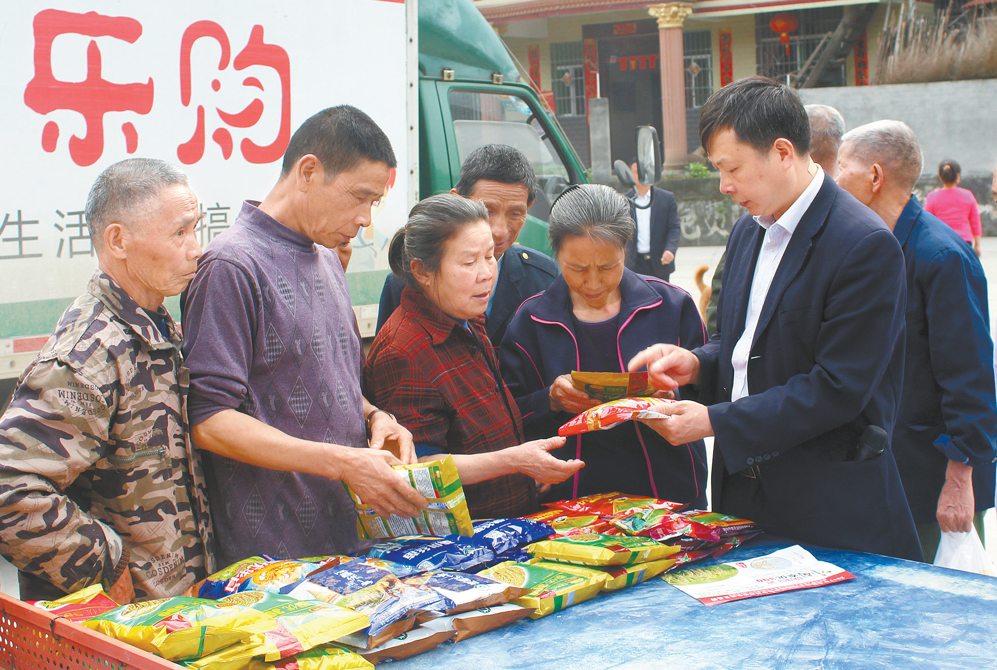 春耕忙,送科技下乡忙。召开村级产说会、“服务三农”主题订货会,联合农资厂家为农民开展无人机喷洒农药等,湖南省邮政分公司送科技下乡活动正在全省火热开展中。至目前,全省邮政农药销售预计将超过3万桶,通过产说会预订复合肥已超过4000吨,其中,高效肥占比超过80%。图为4月4日,会同县邮政分公司工作人员在金子岩乡白市村为村民介绍农资。  □杨芳东  摄影报道