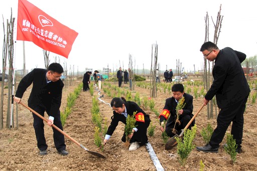 近日,邮储银行安徽省阜阳市阜南县支行党员志愿者参与了阜南县“金融林”项目建设。