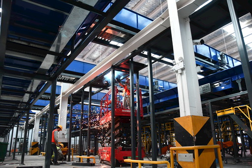 自10月中旬起,湖南省邮政分公司启动长沙邮区中心局邮件处理中心集包作业工艺设备配备工程建设。长沙中心局维护人员全员停休,按照现场施工的要求,每天安排5至7名技术人员参与工程建设,协助厂方进行线路布设、胶带机设备拆装、滑槽组装、安防设施安装等工作。据悉,设备改造后将增加4个卸车口、10个直连装车口,预计提升处理能力20万件/天;新增集包台席24个,预计集包效率为3.6万件/小时,确保新设备在“双11”期间形成生产能力。□张思瑶  摄影报道