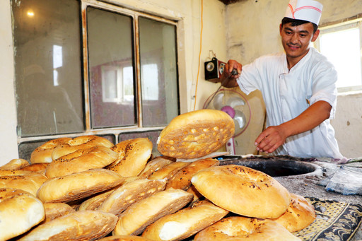 赛力克波力·努拉什在打馕。