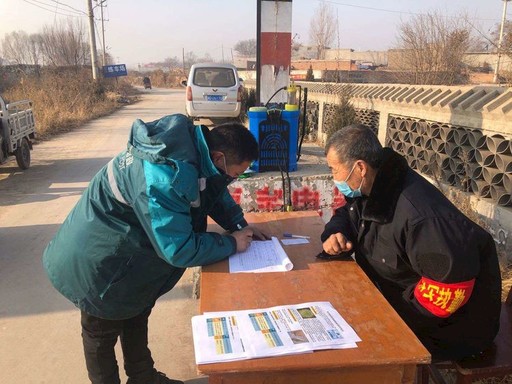 郭树理在村口配合防疫人员做好登记。