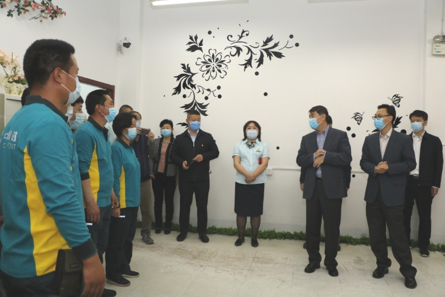 在五一国际劳动节来临之际,中国邮政集团有限公司党组副书记、集团工会主席李丕征,集团公司党组成员、总会计师郭成林一行于4月27日来到北京市海淀区邮政分公司万寿路揽投部,代表集团公司党组看望慰问疫情防控期间坚守服务岗位的邮政员工,为一线员工送上集团公司党组和工会的亲切关怀与节日问候。