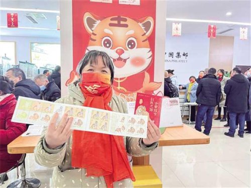 买到虎年生肖邮票的市民十分开心。通讯员 黄倩 摄