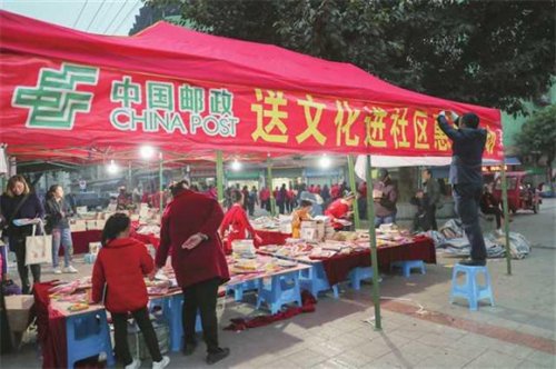 “服务全民阅读,我们还把书店开到群众身边。”重庆邮政相关负责人介绍,一方面进商圈、进社区、进校园开展惠民书展,通过开展大力度的优惠购活动,开展教育、健康等文化讲堂,引导群众培养和强化阅读习惯;另一方面通过推广《参考消息》《中国国家地理》《读者》《课堂内外》《家庭医生》等精品报刊产品,塑造邮政畅销报刊品牌,优化阅读产品供给,为群众提供文化惠民便民服务,传递精品阅读价值。