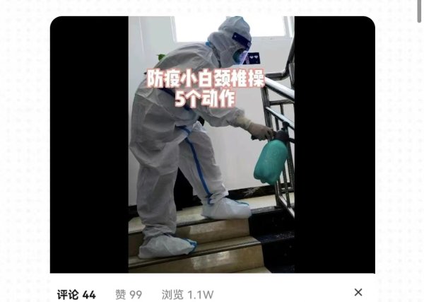 酒店今天没有离开和入住人员,所以做好日常防疫工作即可。因为前几天都没有时间锻炼,肩颈疼痛厉害,我在小红书上找到了一个适合防疫大白的肩颈操,做完以后感觉舒服多了,便录制了一个抖音视频,结果浏览量达到1.1w,好激动好开心。还喝到了一直想喝的牛奶,真好。