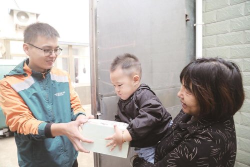 阮海良送快递上门。