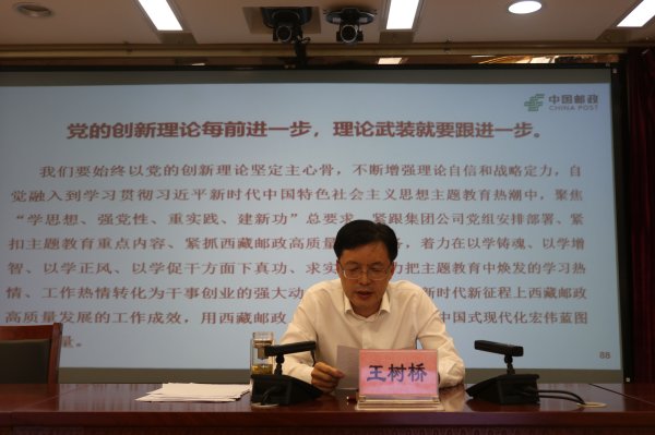 7月5日,中国邮政集团有限公司西藏自治区分公司组织开展党委书记讲党课活动。集团公司主题教育第十巡回指导组张斌同志通过腾讯会议方式到会指导。党委书记、总经理王树桥同志以“感悟思想伟力,发扬斗争精神, 勇于自我革命,以习近平新时代中国特色社会主义思想推动西藏邮政高质量发展”为题,围绕以学铸魂、以学增智、以学正风、以学促干方面,紧密结合西藏邮政主题教育各环节工作以及调查研究中发现的问题,整改整治推进情况等方面进行了授课。在家党委班子成员,全区四级副及以上人员、直属机关全体党员在主会场和分会场参加学习。
