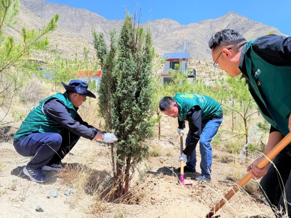 4月25日,西藏邮政分公司开展“手植一棵树,绿化一片天”义务植树活动暨“邮驿传情 绿化三北”邮政示范林公益活动。