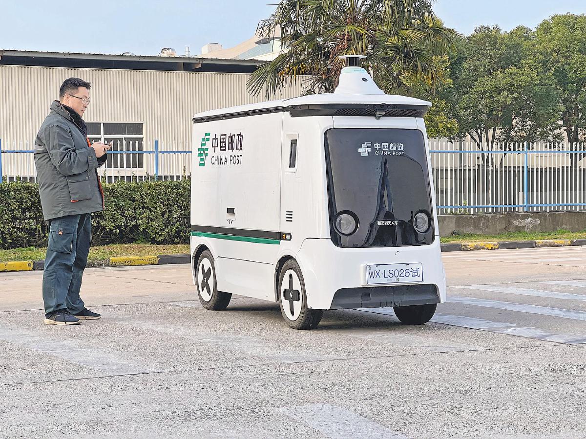 在吴中太湖度假区、张家港大学城等地区,无人车已参与乡镇邮路联运作业。每天早上,无人车定时从县级分拣中心出发,行驶约24公里,依次将邮件投送至镇级揽投部或合作网点。系统可根据实时路况自动调度行驶路线,实现匀速运行、能耗最优、任务闭环。每条投递线路日支持邮件量约600件,年服务量超18万件,年节省运营成本约2.5万元。