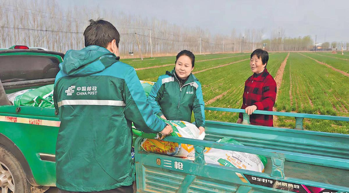 3月17日,在山东省德州市齐河县大黄乡彭太村的田间小路上,邮政员工开着小货车早早地来到田间地头,将化肥摆放到村民指定的位置。在鲁西北,惊蛰一过,农户便开始陆续下地春耕。齐河邮政不仅及时将农资配送到“最后一公里”,还帮农户邀请专业人员讲解春天病虫害防治等农技知识,为农户春耕生产提供既省心又暖心的服务。